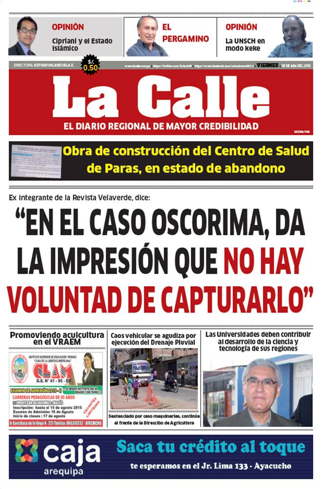 No hay Voluntad de Capturar a Oscorima (Diario La Calle Ayacucho) /